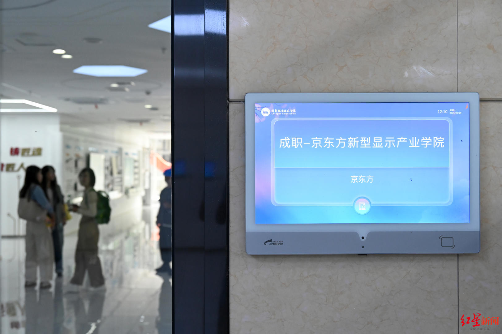 ▲成都職業技術學院電子基礎實訓室 “入學即就業”:拓寬“校門-職場”通道,專業調整率達40%一條真正用于市場訂單生產的顯示模組封裝產線,如何成為高職院校應用型人才的“練兵場”?走進成都職業技術學院軟件大樓“校中廠”——高仿真顯示模組實訓車間。