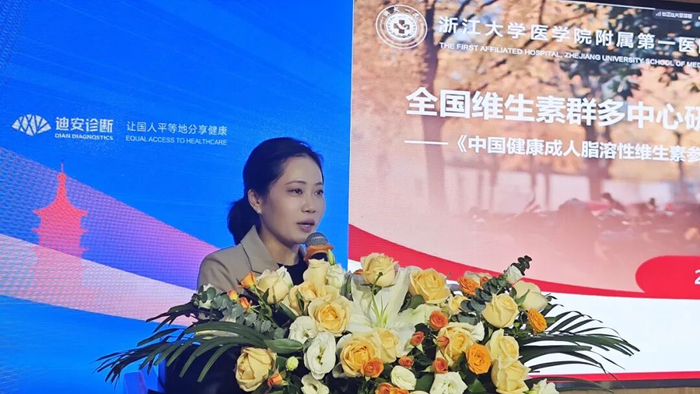 迪安診斷學科市場部醫學經理閆娜現場分享 浙江大學醫學院附屬第一醫院營養師劉沉冰詳細介紹了課題中脂溶性維生素群(A、D、E、K)的應用場景、臨床意義、檢后干預,并回顧多中心項目進程、研究進展和未來思考。