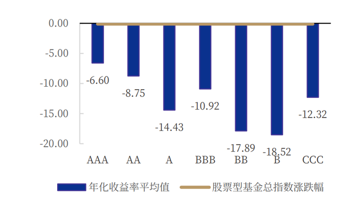 銀河證券在6月的名為《ESG 標準化進程加快,中國 ESG 開啟新篇章》研究報告中指出,持有ESG評級越高公司的股票,相對而言收益率也越高一年內ESG 相關公募基金收益率平均值和 ESG 評級關系(%)。