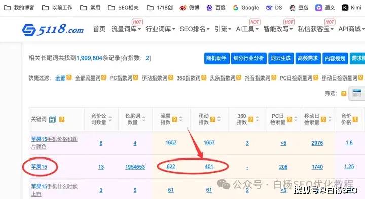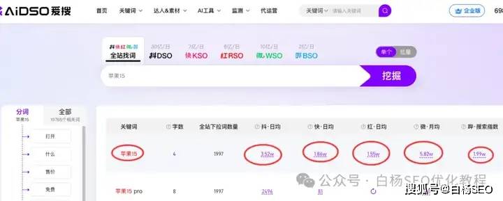 關于這些工具怎么用,看我之前寫過:白楊SEO:一文告訴你百度、微信、阿里、頭條等指數查詢工具的作用及使用方法!我們還可以用第三方平臺的指數工具,比如白楊SEO推薦一下5118工具,或者AIDSO工具